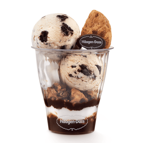 달콤한 하겐다즈 쿠키앤크림 아이스크림과 바삭한 쿠키 그리고 진한 초콜릿 소스까지 함께 올라가 스위트 모먼트를 경험할 수 있는 디저트