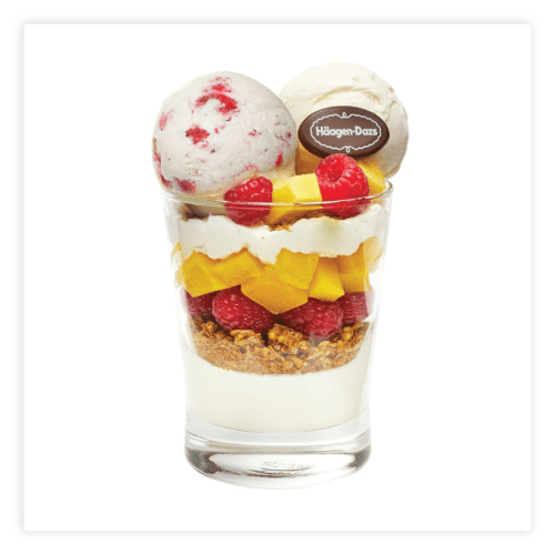 하겐다즈 아이스크림과 요거트, 견과류, 그리고 계절과일을 함께 즐길 수 있는 디저트.